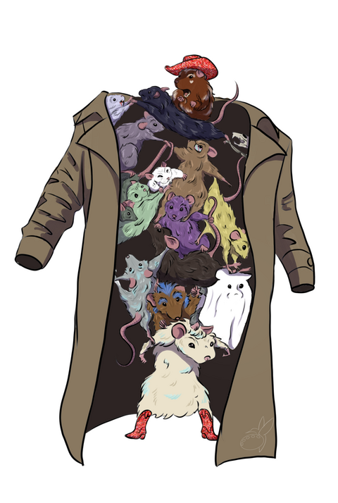 DEAD COWPOKES DON'T WRANGLE is a collaborative effort between eighteen different creators, curated by Mars Adler and H.S. Wolfe. To fund this project we've launched a kickstarter running from June 1st to June 30th, with the paperback and ebook set to release to backers November 26th 2024. The title is a play on the phrase Dead Dove; Do Not Eat and will be made up of thirteen stories and four art pieces falling across several genres including horror, fantasy, paranormal, sci-fi, romance and erotica.Rats in a trenchcoat by Wendy Richmond